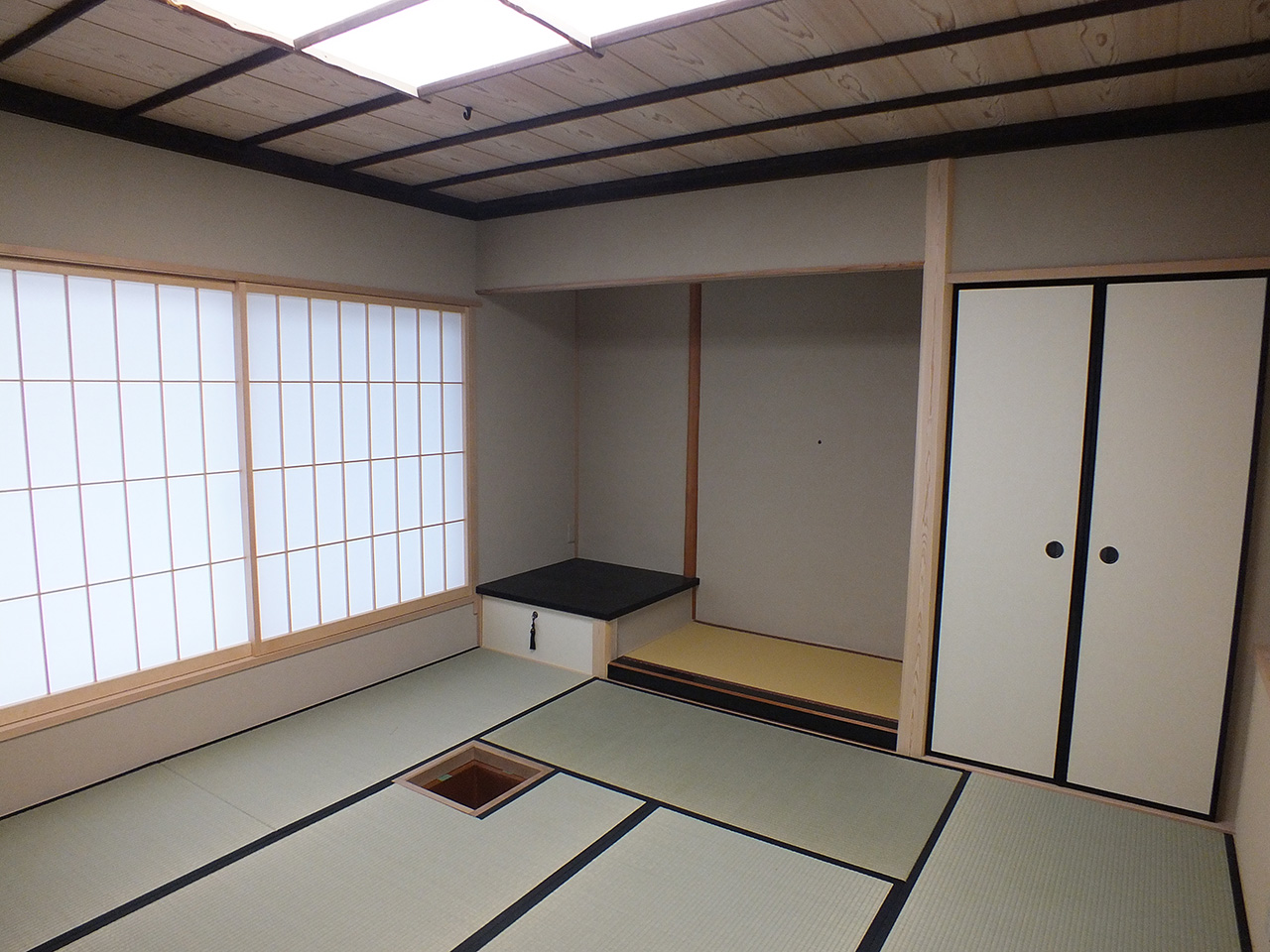 茶室の新築・改修、茶室への改修。格式高い茶室から趣味の茶室まで、ご相談に応じてプランニングいたします。 ・流派ごとのご要望に対応いたします。 2017年竣工 甲府市 新築 夢8畳広間と2畳台目の小間を持つ本格的な新築の茶室空間 詳しく見る→ 2016年竣工 甲府市 リフォーム 続き和室を使用して茶道空間にリフォーム 詳しく見る→ 2014年竣工 都留市 新築住宅の3階に広間8畳の茶室をプランニング 詳しく見る→