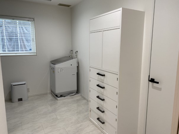 家事動線は、ランドリールームを南面にプランニングして、洗濯から洗濯干し、アイロンまでの作業がひと部屋できるようにしました。