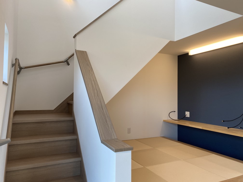 プライベート玄関、吹き抜け空間、小上がり畳スペースなどご希望の間取りをプランニングしました。