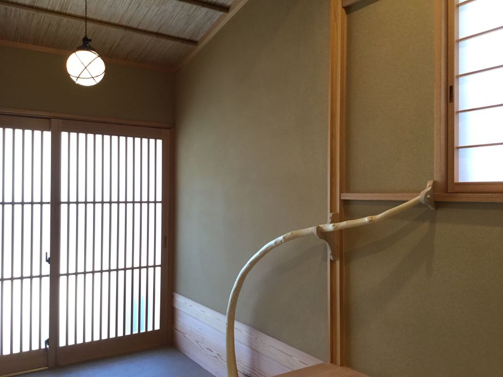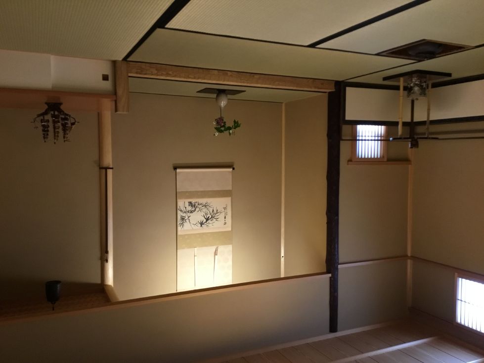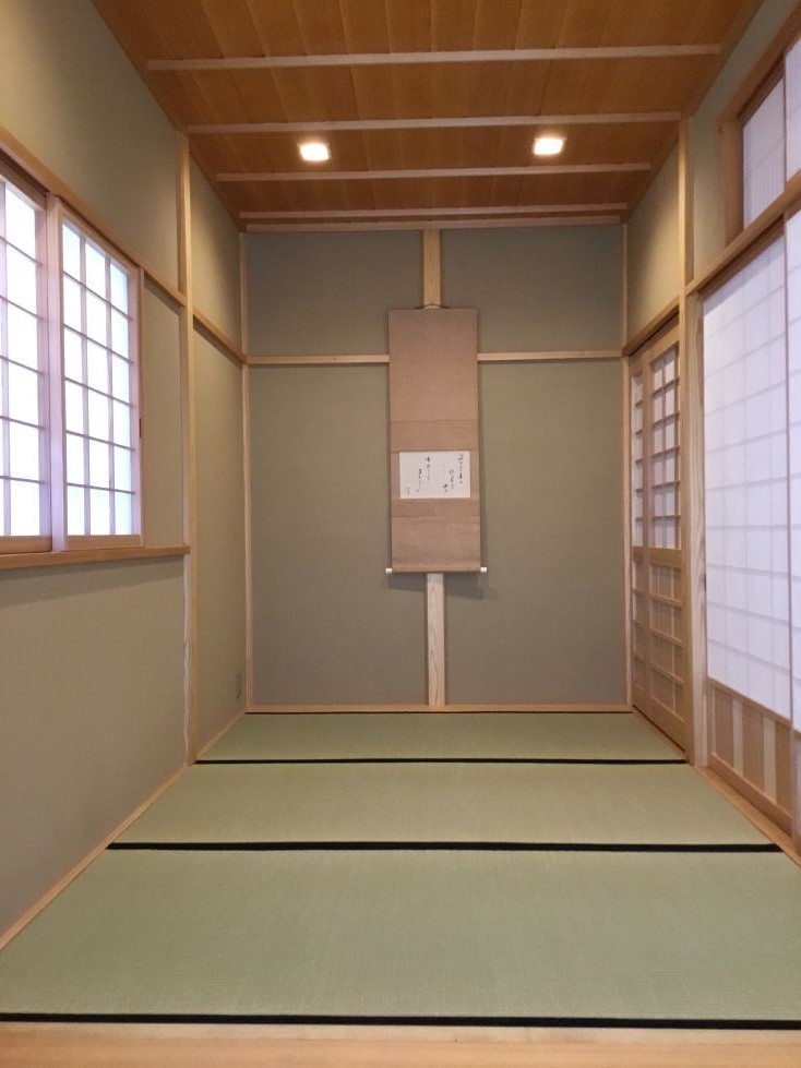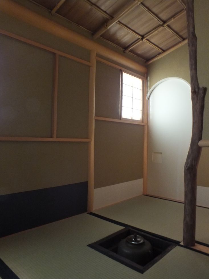 新築住宅の3階に広間8畳の茶室をプランニング。踊り場部分を利用して立水屋を設置。